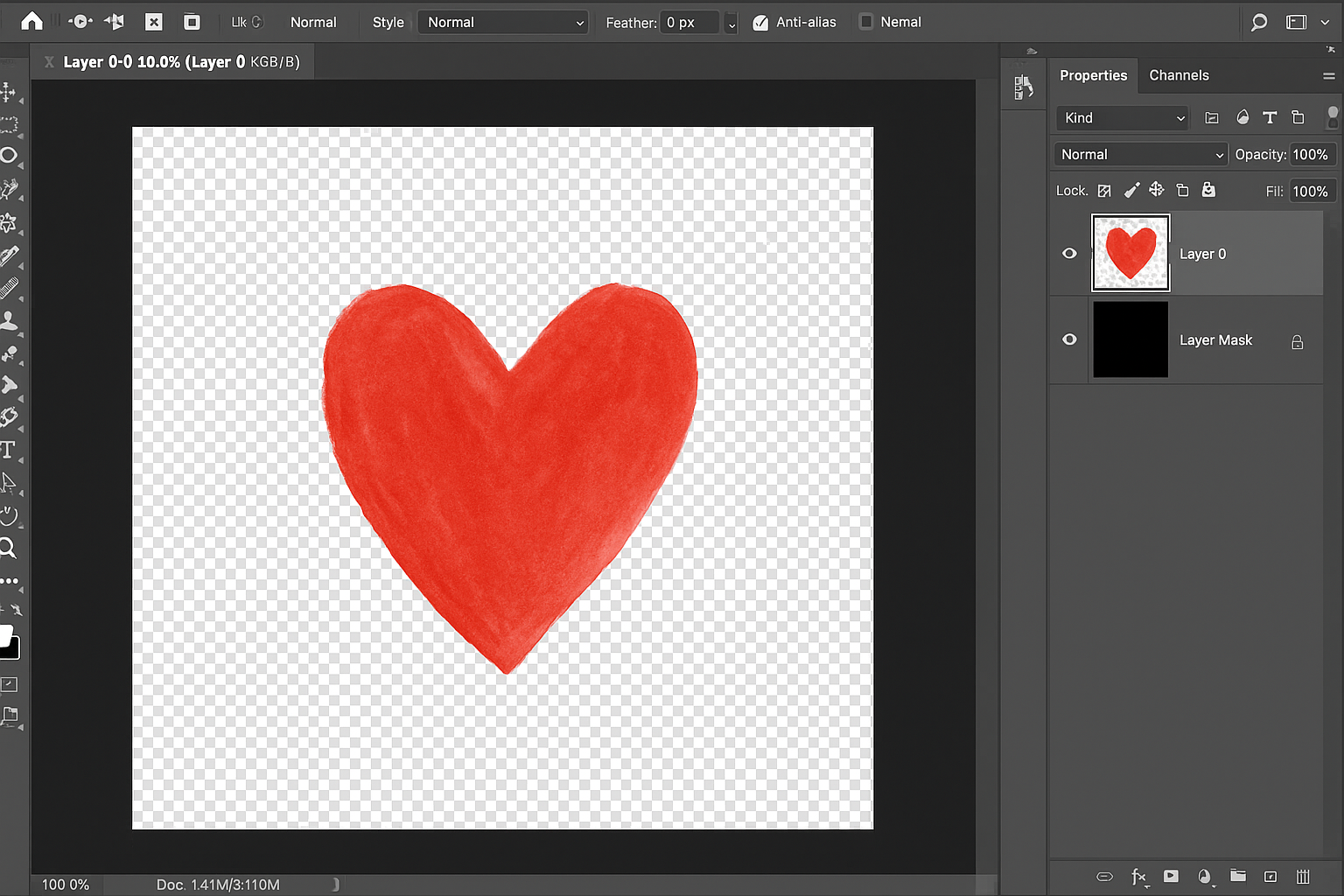 点击图层面板底部的遮罩按钮,背景瞬间变成透明的棋盘格。
